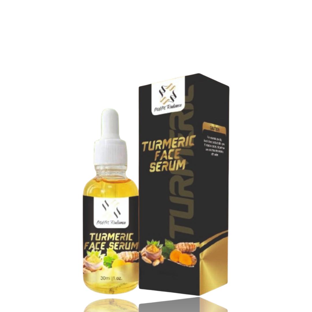 M & M Radiance Turmeric Face Serum: Enriched with organic turmeric and powerful antioxidants, this lightweight serum brightens, evens skin tone, fades dark spots, and provides deep hydration for a smooth, glowing complexion. Perfect for all skin types. Use with M & M Turmeric Soap Bar for optimal result.